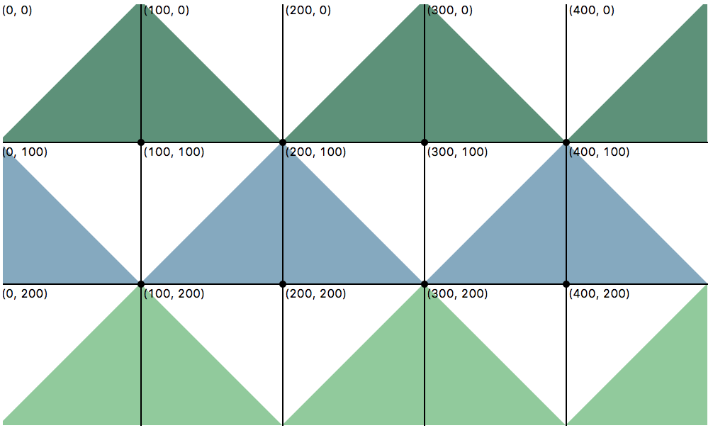 - bottom_left (tuple): a tuple – an point, an (x, y) coordinate – that defines the bottom-left position of the triangle. The first element in the tuple refers to the x-coordinate and the second element in the tuple refers to the y-coordinate.
