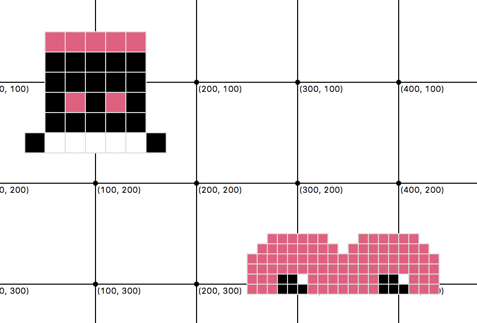 - Create a third “tuple of tuples” to represent a new pixel art drawing. To get ideas, Google “pixel art simple.”