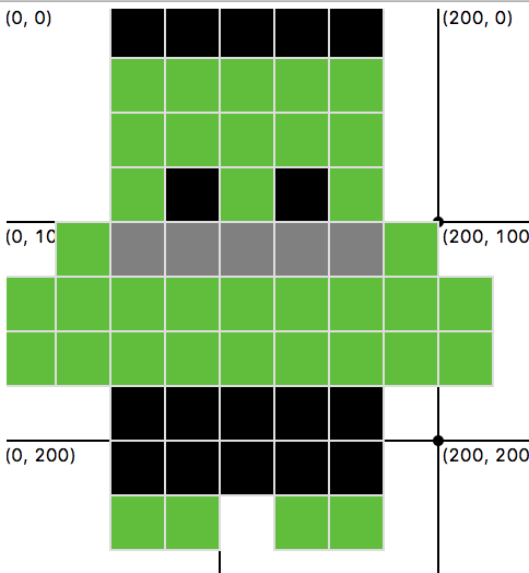 - Each “pixel” is 25 units wide / tall