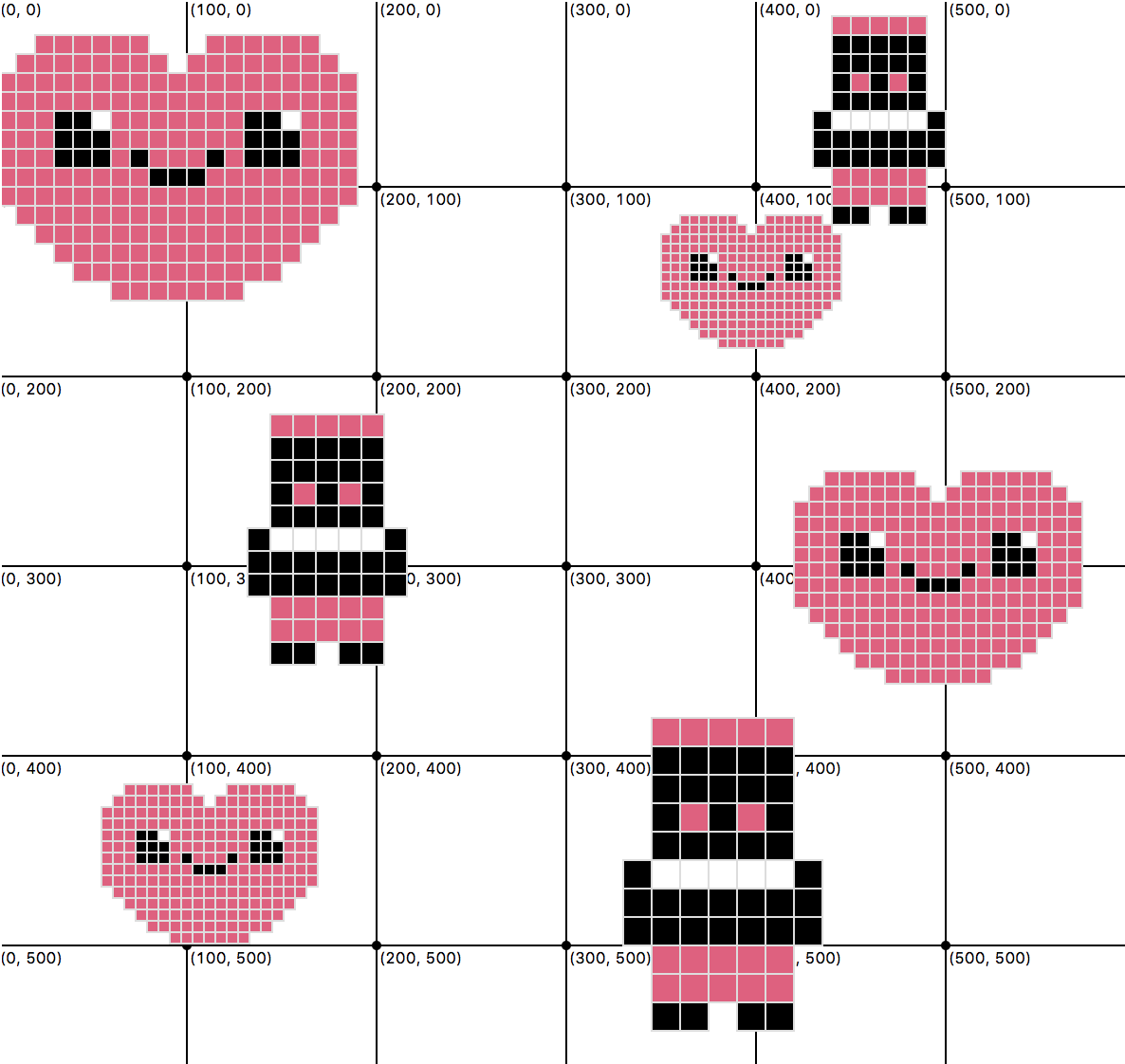 Note that the (x,y) position refers to the top-left corner of where the pixel art will be drawn.